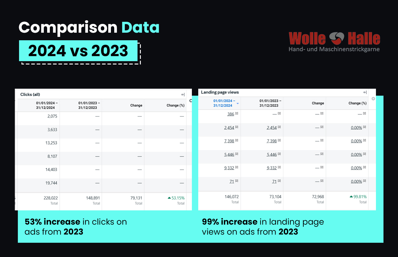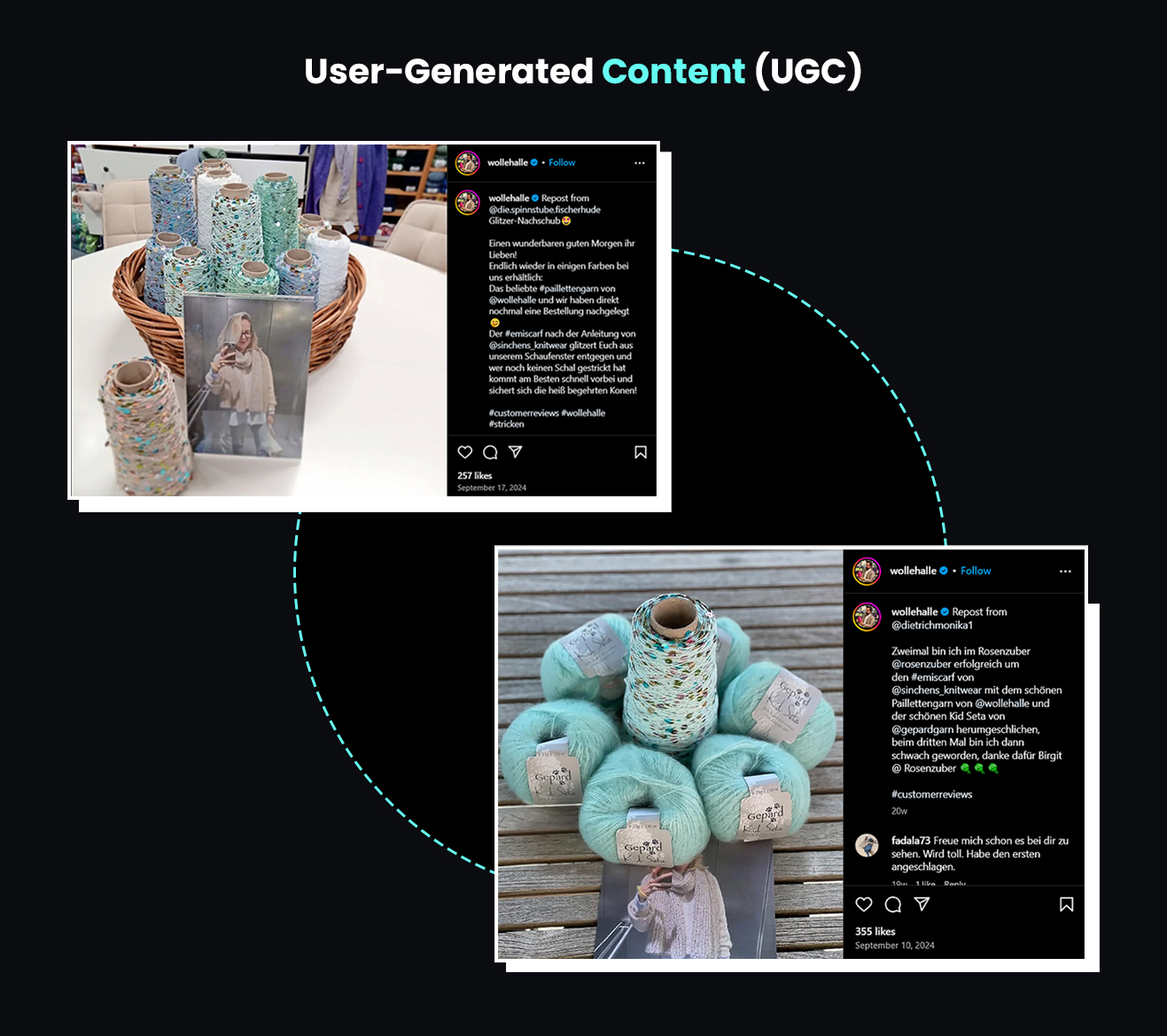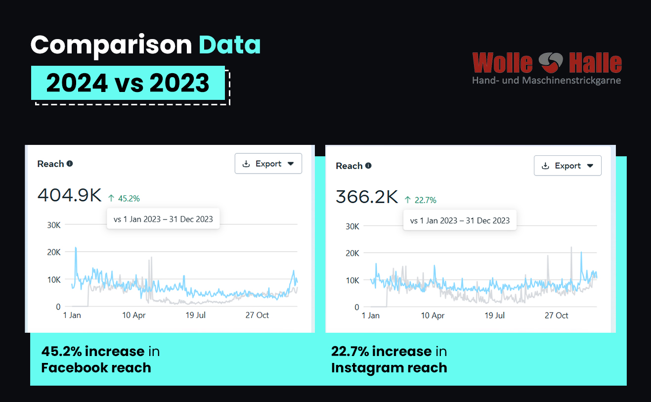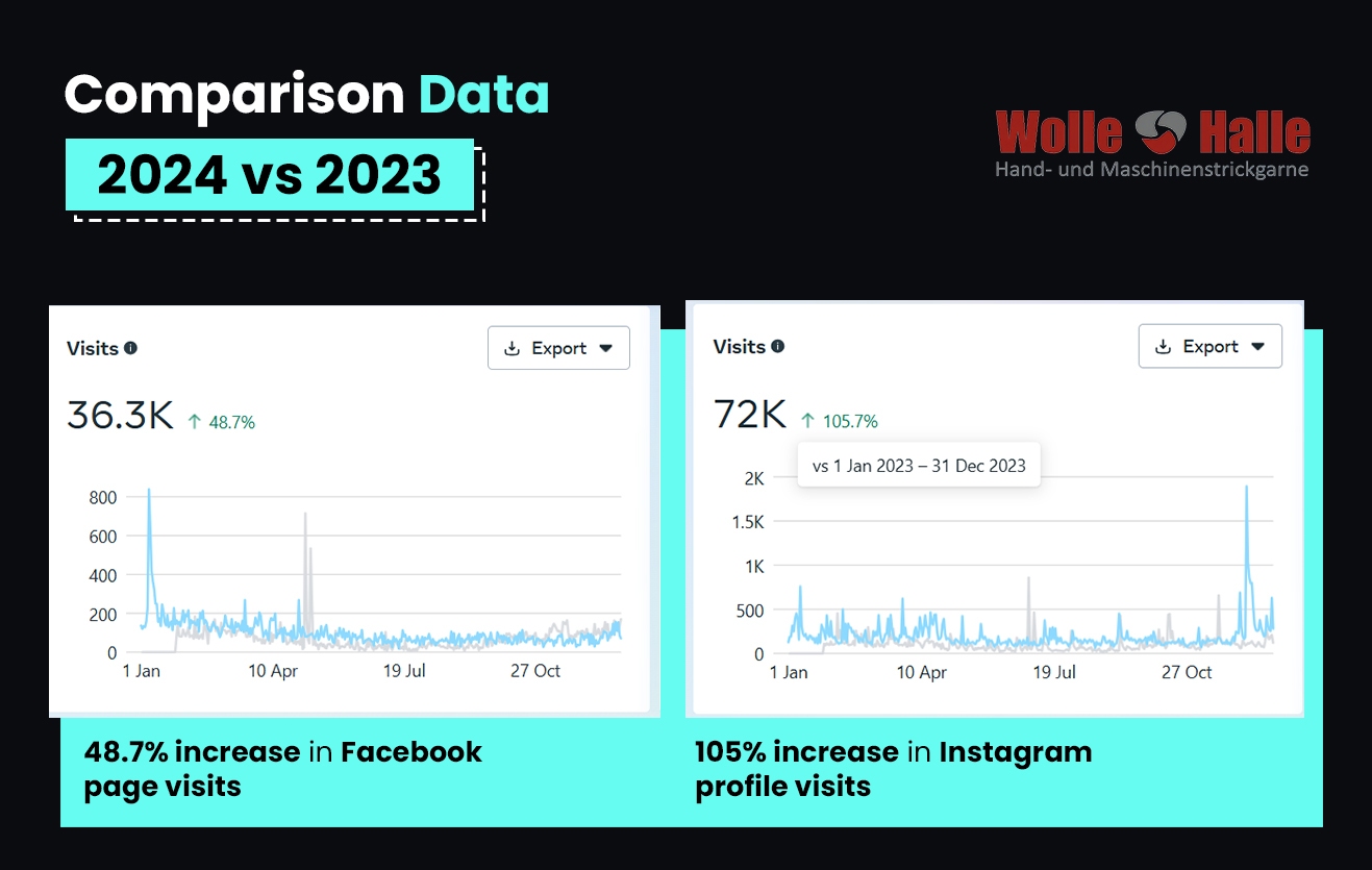 - Used relevant search terms like knitting ideas and yarn crafts along with branded hashtags like #WolleHalleCreations to improve visibility and build a community.